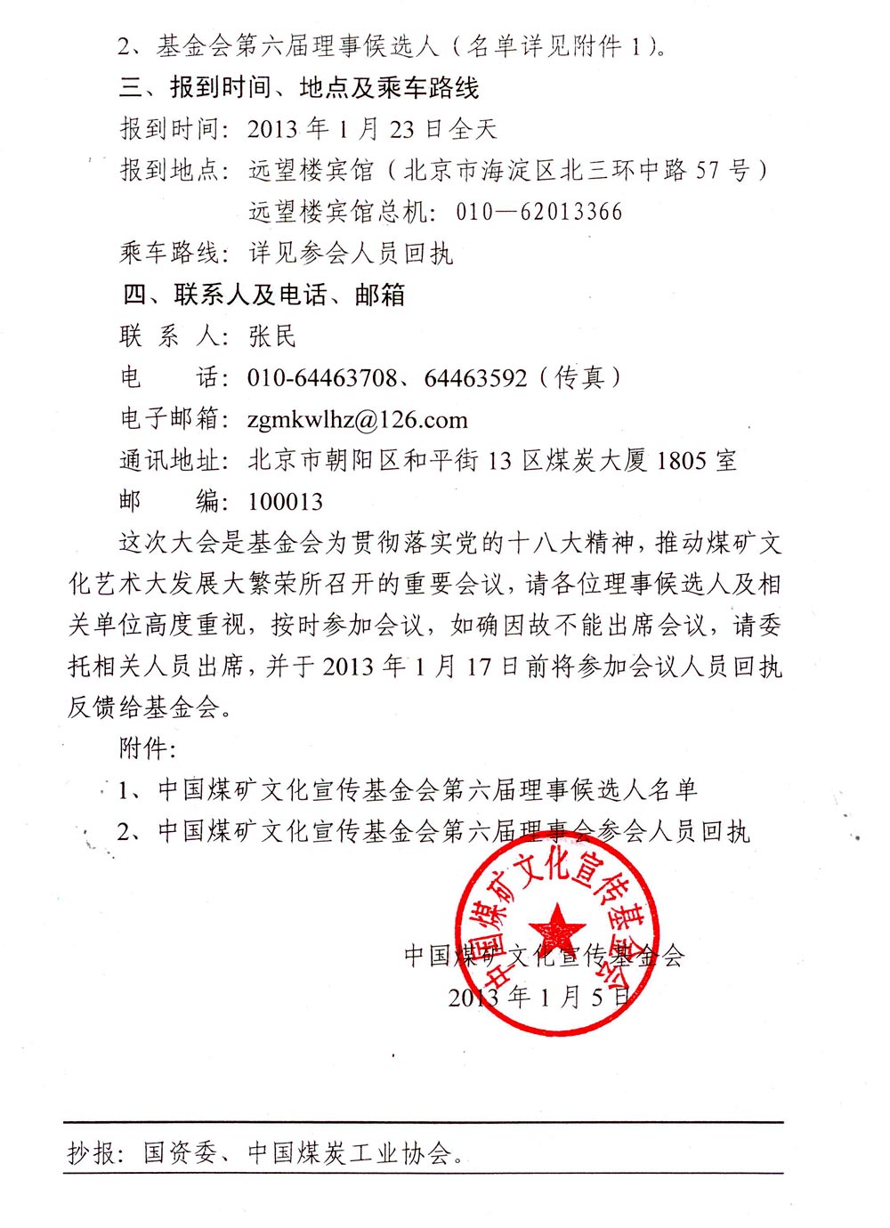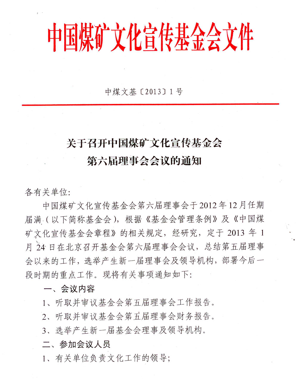 關于召開中國煤礦文化宣傳基金會第六屆理事會會議的通知
