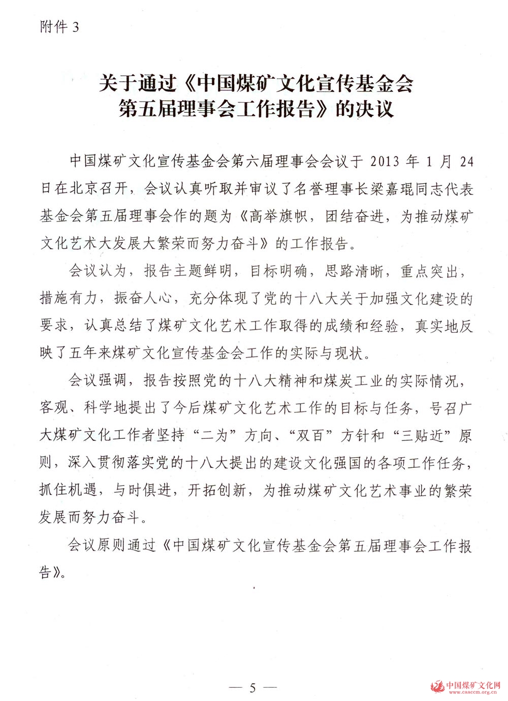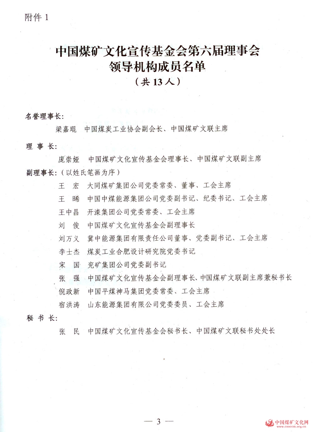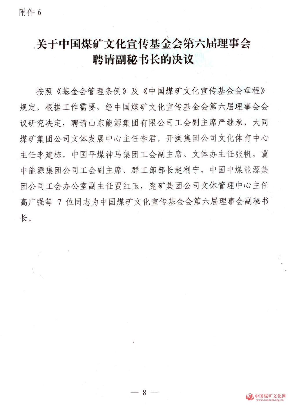 關于公布中國煤礦文化宣傳基金會第六屆理事會會議選舉結果及相關決議的通知