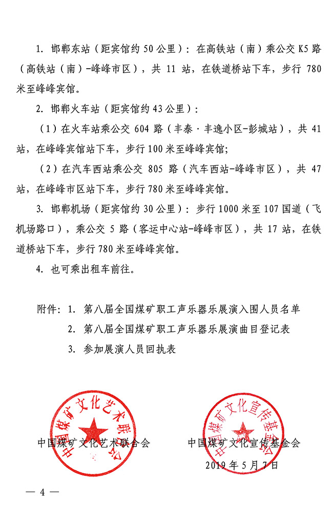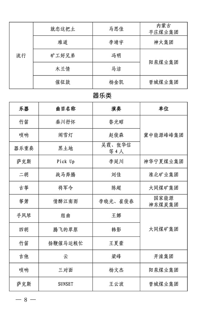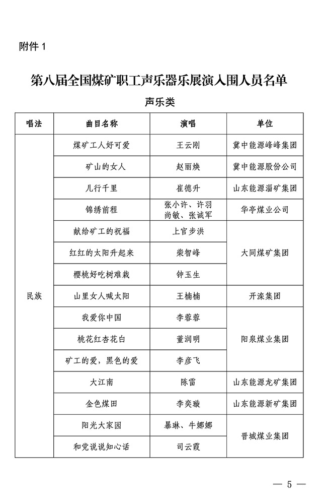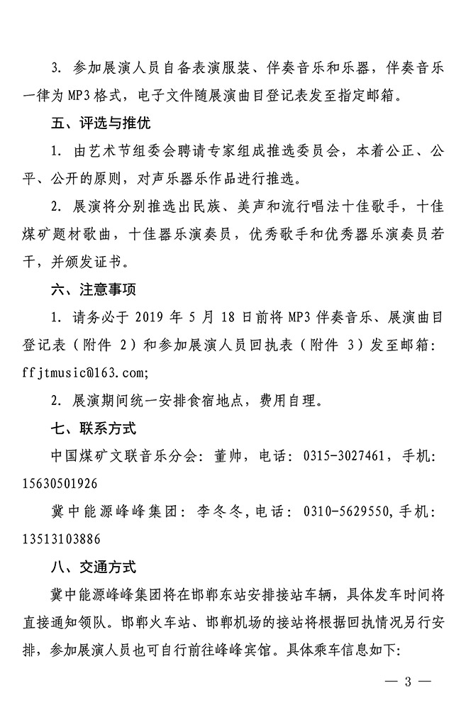 關(guān)于參加第八屆全國(guó)煤礦職工聲樂器樂展演及匯報(bào)演出的通知 來源:中國(guó)煤礦文聯(lián) 作者: 時(shí)間:2019-05-09 【字體:小 大】 附件:1.關(guān)于參加“慶祝新中國(guó)成立70周年” 第五屆中國(guó)煤礦藝術(shù)節(jié)第八屆全國(guó)煤礦職工聲樂器樂展演及匯報(bào)演出的通知(PDF版、附件1)2.第八屆全國(guó)煤礦職工聲樂器樂展演曲目登記表3.參加展演人員回執(zhí)表 智能標(biāo)簽: 第五屆中國(guó)煤礦藝術(shù)節(jié) 相關(guān)內(nèi)容 分享到: 【打印正文】