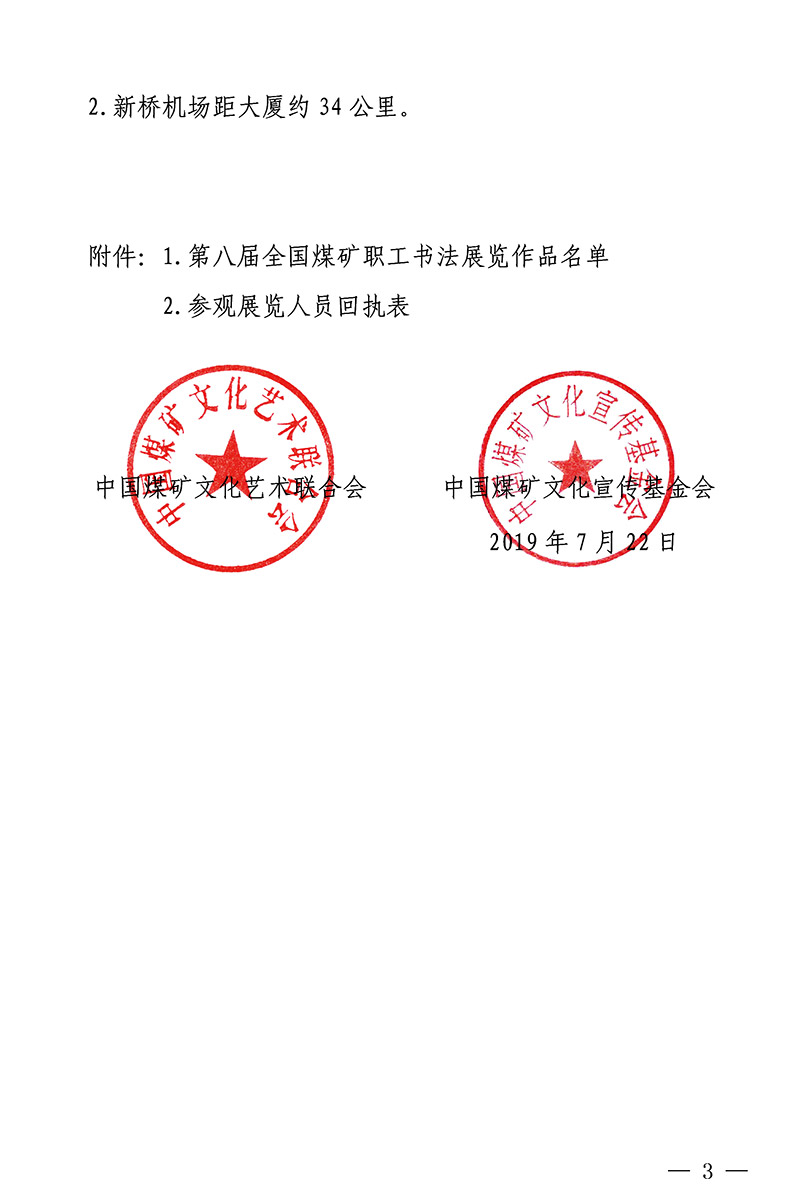 關(guān)于參觀第八屆全國(guó)煤礦職工書法展覽的通知 來源:中國(guó)煤礦文聯(lián) 作者: 時(shí)間:2019-07-26 【字體:小 大】 附件:· 關(guān)于參觀“慶祝新中國(guó)成立70周年”第五屆中國(guó)煤礦藝術(shù)節(jié)“中國(guó)書法大廈杯”第八屆全國(guó)煤礦職工書法展覽的通知(PDF版,含附件1)· 參觀展覽人員回執(zhí)表(附件2) 智能標(biāo)簽: 中國(guó)煤礦文聯(lián) 中國(guó)煤礦藝術(shù)節(jié) 相關(guān)內(nèi)容 分享到: 【打印正文】