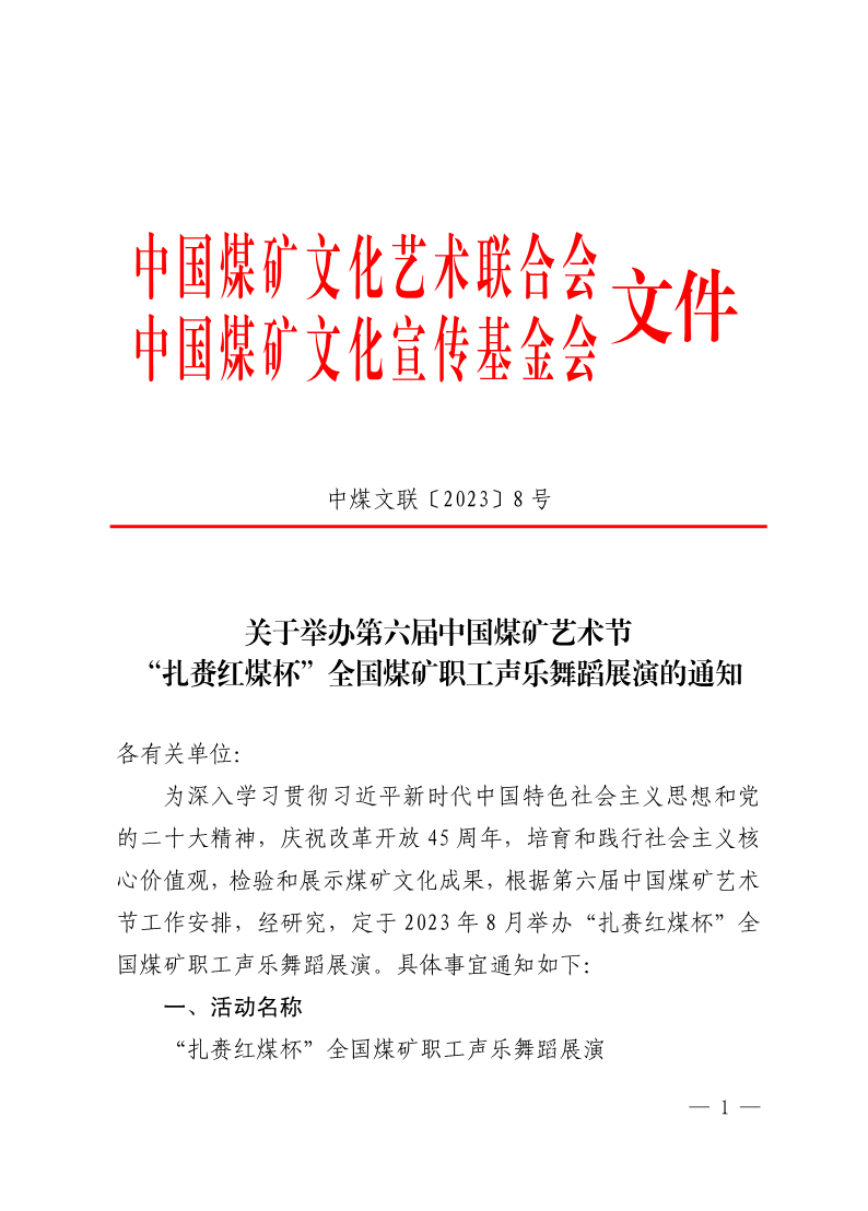 關于舉辦第六屆中國煤礦藝術節“扎賚紅煤杯”全國煤礦職工聲樂舞蹈展演的通知 來源:中國煤礦文聯 作者: 時間:2023-06-08 【字體:小 大】 附件:1.“扎賚紅煤杯”全國煤礦職工聲樂舞蹈展演聲樂作品登記表2.“扎賚紅煤杯”全國煤礦職工聲樂舞蹈展演舞蹈作品登記表 分享到: 【打印正文】