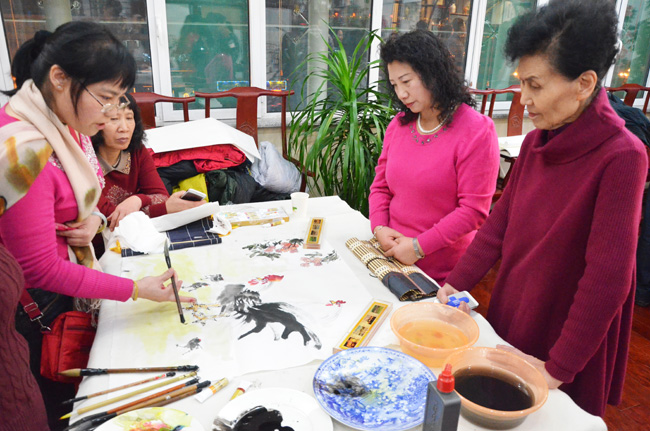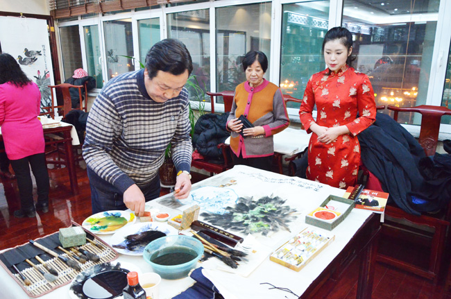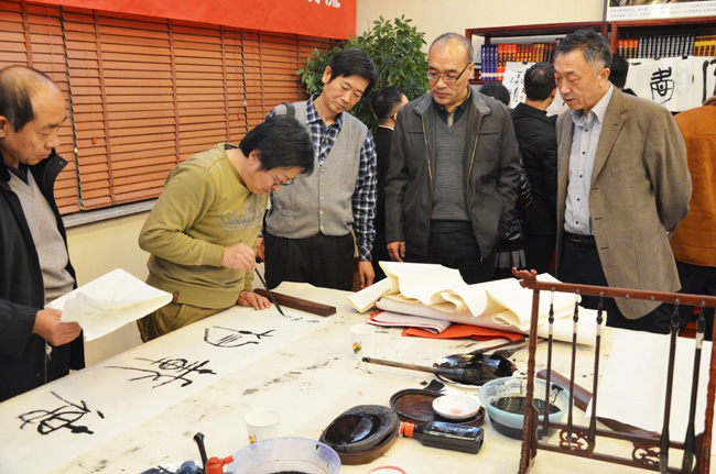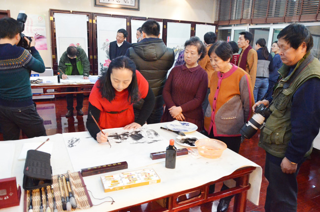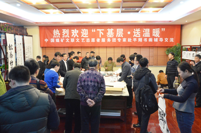 中國煤礦文聯文藝志愿者在書畫筆會交流活動現場