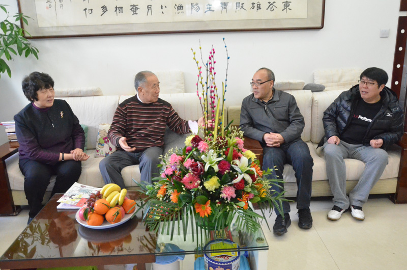 龐崇婭、劉俊、盛軍看望煤礦老作家黃樹芳同志(左二)