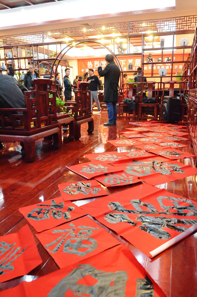 活動現場氣氛熱烈,藝術家們揮毫潑墨,為平朔礦區職工寫“福”字、寫春聯,邊創作書畫作品邊和平朔礦區的書畫愛好者交流創作經驗,筆會交流活動共書寫“福”字200多個,春聯60多套,創作書法作品50多件、美術作品10多件。藝術家們用飽蘸喜氣墨汁的畫筆創作出一件件飽含誠意的書畫作品,為平朔礦區職工紅紅火火的生活送上美好的祝愿。