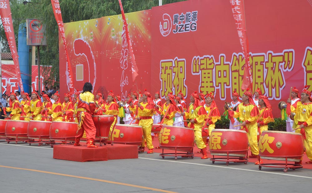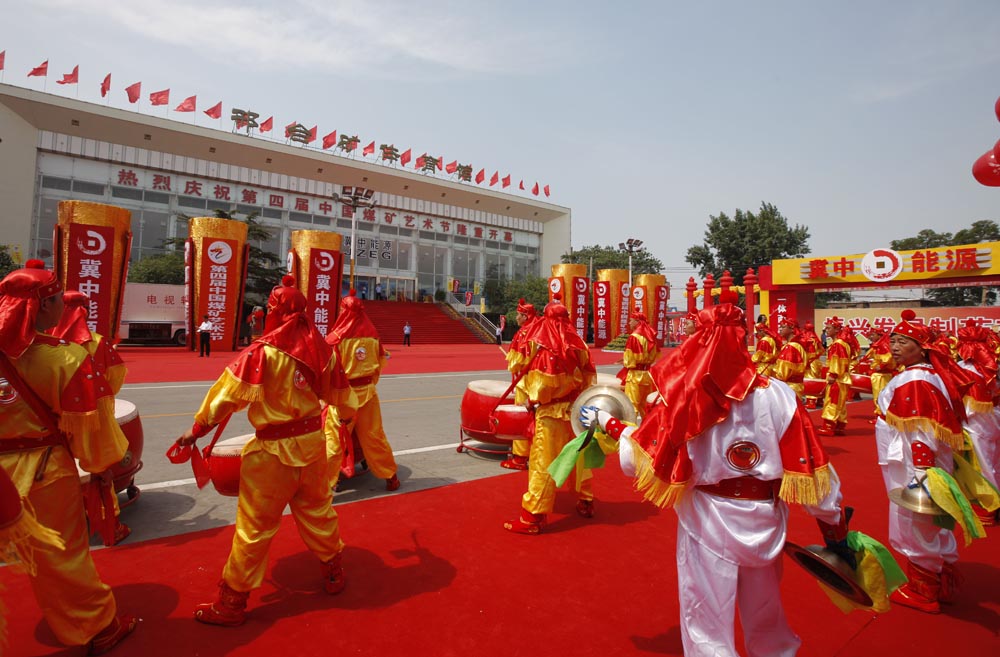 開幕式場外,冀中能源鑼鼓隊熱烈祝賀第四屆煤礦藝術節開幕