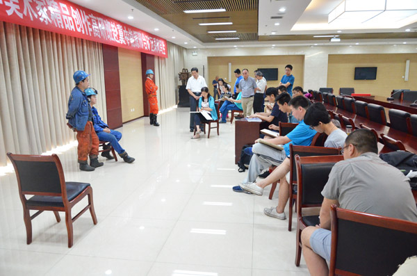 在為期3天的采風寫生活動中,有關領導和高研班的師生們一起在礦區參觀考察了調度中心、主副井、洗煤廠、機修廠和礦區生態園等,學習掘進、割煤、支護等井下大型生產、運輸機械和洗煤設備有關知識。學員們冒著30多度的高溫,在維修車間、洗煤廠等礦區各地進行實地寫生創作,與煤礦工人親切交談,了解井下和地面各工種的生產工作情況,青年美術家們對礦山發展的關心和熱情也被礦工們交口稱贊。