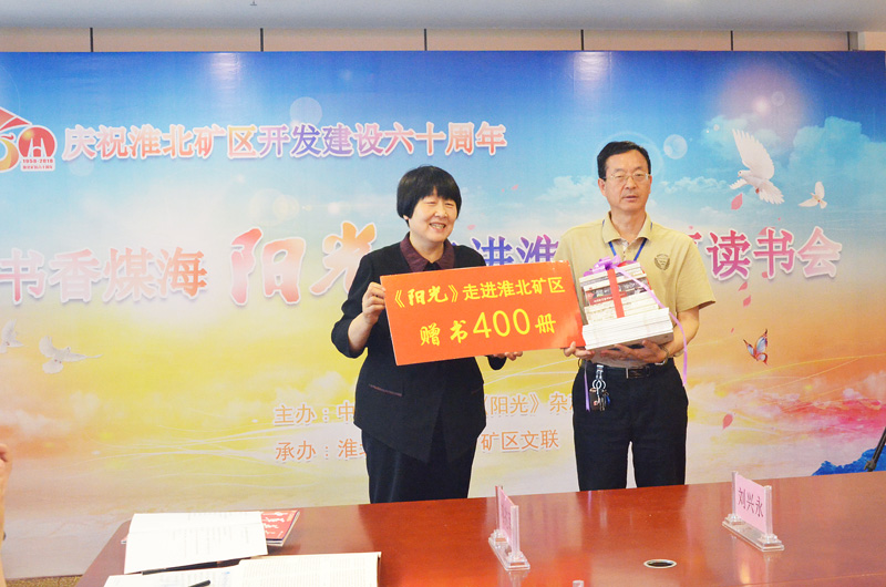 龐崇婭代表《陽光》雜志向淮北礦業集團贈送圖書