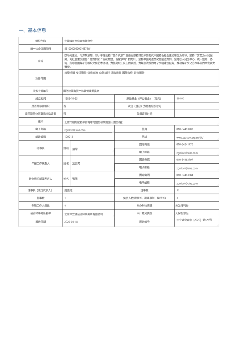中國(guó)煤礦文化宣傳基金會(huì)2019年度工作報(bào)告(以下簡(jiǎn)稱(chēng)“報(bào)告”)已經(jīng)登記管理機(jī)關(guān)審查通過(guò),根據(jù)《基金會(huì)管理?xiàng)l例》規(guī)定,現(xiàn)將報(bào)告(摘要)公布如下: