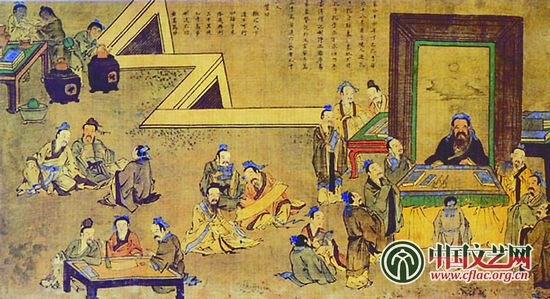 中國(guó)藝術(shù)教育源遠(yuǎn)流長(zhǎng)。我國(guó)藝術(shù)教育的最初形式為“樂教”,“興于詩(shī),立于禮,成于樂”,是孔子對(duì)此進(jìn)行的概括總結(jié)。詩(shī)、禮、樂,是藝術(shù)的三種樣式,也是教育的三種方式,藝術(shù)與教育合而為一,藝術(shù)教育是成就人生最高境界的關(guān)鍵要素。上圖分別為《孔子圣跡圖之杏壇禮樂》(左)、《樂舞百戲圖(兩城山漢畫像石拓片)》