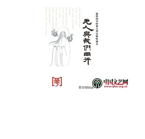 2017年3月7日,在北京民族文化宮大劇院舉行了“先人與我們同行——感悟國(guó)學(xué)經(jīng)典大型交響詠誦會(huì)”,既是對(duì)十年精品的集中展示和回顧總結(jié),又是創(chuàng)作者們?cè)俪霭l(fā)的號(hào)角。“中華經(jīng)典系列詠誦”的創(chuàng)作者們將以先賢為師,以傳承民族血脈為己任,為弘揚(yáng)中華傳統(tǒng)文化不斷前行!