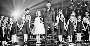 1月16日,央視大型文化節目《經典詠流傳》節目錄制現場舉行發布會。圖為歌手沙寶亮和小朋友在現場演唱 (王旭華/攝 視覺中國/光明圖片)