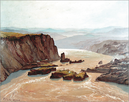 黃河三門峽·中流砥柱(布面油畫) 吳作人