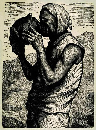 早在延安時期,木刻藝術家們便用手中的刻刀,表現黨領導下的人民軍隊始終與人民群眾勠力同心、并肩戰斗的情景。胡一川的《到前線去》、力群的《飲》、彥涵的《當敵人搜山的時候》、古元的《人橋》等經典名作,以單純而有力的木刻藝術語言,成就了對于崢嶸歲月的視覺記錄與詩意表現,展現了家國危難之時藝術創作的重要作用。
