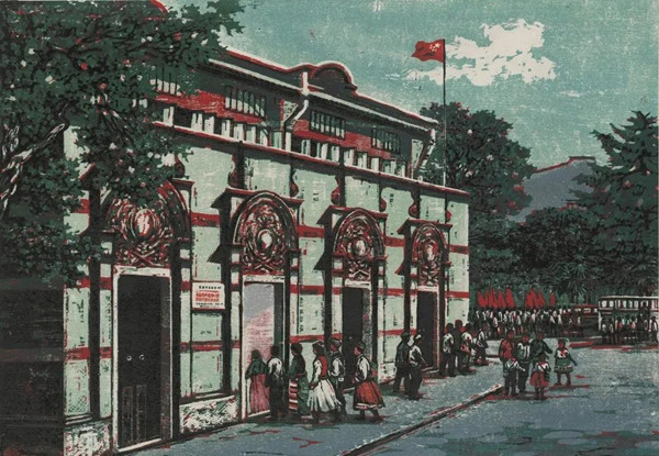 新中國成立初期誕生的美術經典中,有不少表現中國共產黨成立這一“開天辟地的大事變”的佳作,如顏文樑油畫《南湖》、沈柔堅版畫《瞻仰》、陳逸飛與邱瑞敏合作的油畫《在黨的一大會議上》等,以不同風格、不同視角展現了深刻而豐富的精神內涵。這一時期的黨史題材油畫名作有羅工柳的《地道戰》、王式廓的《參軍》、董希文的《開國大典》、艾中信的《紅軍過雪山》、靳尚誼的《毛澤東在十二月會議上》、鐘涵的《延河邊上》等;中國畫名作有王盛烈的《八女投江》、石魯的《轉戰陜北》、葉淺予的《北平解放》、李琦的《主席走遍全國》等。這些作品都以對歷史場景和人物形象的具體描繪,展現了中國共產黨人艱苦卓絕的奮斗歷程和崇高的精神境界。雕塑名作人民英雄紀念碑浮雕、潘鶴的《艱苦歲月》等,同樣展現了大無畏的革命英雄主義精神。除此之外,黃胄中國畫《洪荒風雪》、潘世勛油畫《我們走在大路上》等經典作品,小中見大,生動再現了中國共產黨團結帶領人民艱苦創業的精神風貌。