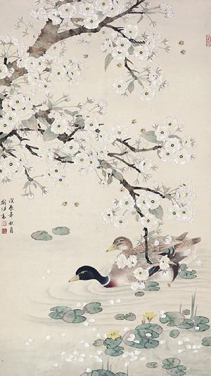上世紀90年代,喻繼高精品佳作頻出,《杜鵑山雀》《芭蕉丹柿》《牡丹綬帶》《孔雀戲春》《荷塘群鴨》《蓮塘戲鶴圖》《初春》《茶花鸚鵡》《櫻花雙鴿》《玉蘭錦雞》《瑞鶴圖》《孔雀圖》等作品都是這一時期的代表,不僅展現(xiàn)了畫家擁抱生活、熱愛自然、歌頌生命的真摯情懷,也讓傳統(tǒng)工筆花鳥畫重新煥發(fā)新的藝術(shù)魅力。他在平凡的景物中開掘更深沉的精神內(nèi)蘊,在人們喜聞樂見的風(fēng)格中升華出獨特的藝術(shù)個性,讓自己的作品更加豐滿、成熟,更富有神韻和意境。這些作品明麗中見深秀,冶艷中見儒雅,溫馨璀璨而風(fēng)規(guī)自遠,鋒芒內(nèi)斂而光彩照人,透出的是一種至真、至美、至善的人格志趣,畫出的是新時代的繁榮和民族的燦爛。