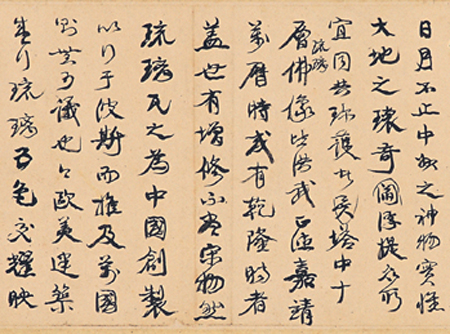 《開封琉璃塔記》對琉璃塔、開寶寺名稱由來、歷史沿革、建筑工匠、歷次增修等,詳加考述,闡磚之先河,不止中州之神物,實為大地之環(huán)奇,且琉璃塔之為萬國師益明矣。但在文物保護上中國卻不及西方,此塔自北宋迄今不足千年,塔中十層琉璃佛像皆世有增修,不盡宋物。因此呼吁保護古跡:“塔舊呼鐵塔失其實,請證其名為琉璃塔,以與百國共珍護之。”此作雖為藁作,文情并茂,書法精妙,堪稱“雙璧”。康氏藁書,與其雄肆開張、茂密沉厚的書法作品碑派風格不同,多屬信筆揮灑,無意于佳者,而且不同時期,風格也不盡一致。