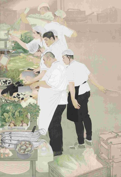 尖峰食刻(國畫) 230×160厘米 陳治 武欣