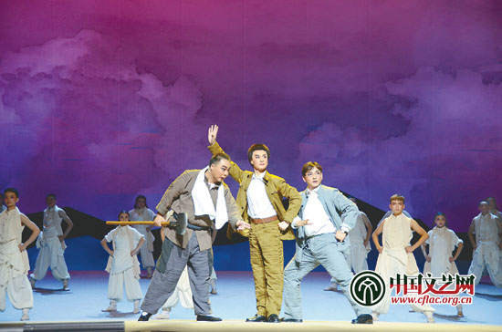 1954年,一位軍人率領1個工兵團、1200名駝工和600名石匠,歷經重重艱難險阻,挑戰極限,在平均海拔4000米且常年積雪的青藏高原上,修通了號稱“世界屋脊蘇伊士運河”的第一條青藏公路。青海省演藝集團京劇院創作的現代戲《七個月零四天》就是反映這一動人事跡,謳歌共產黨人艱苦奮斗、無私奉獻精神的一部作品。從創作團隊上講,聚集了京劇界、文學界、舞蹈界、舞美界等多領域的專家,尋求舞臺呈現上詩化、歌舞化的風貌。在唱腔設計和音樂設計上,作曲家朱紹玉融入了民歌,還穿插運用《國際歌》等歌曲并加以改編,和劇情內容以及導演手法融合在一起。舞臺上,從天幕上垂落的16道長10米、寬1.5米的氨綸白布,既是舞臺表現的手段、舞蹈場景的道具,也成為靈活的舞美布景。根據劇情需要,這些白布與群眾演員時而充當著沼澤、時而化為雪山、時而寓意著公路、時而搭作帳篷,多變律動的白布成功地營造了舞臺空間、渲染了戲劇氛圍。