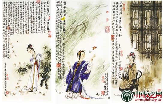 金陵紅樓十二釵之黛玉葬花、寶釵戲蝶、鳳姐弄權 馮 遠