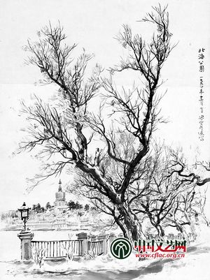 在深圳市關(guān)山月美術(shù)館推出的“南北風(fēng)采——關(guān)山月北京寫生專題展”中,關(guān)山月1954年北京寫生作品《北海公園之一》與現(xiàn)在北海公園實(shí)景照片對比展出