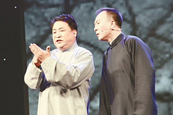 告別陳腐,就應(yīng)該悉知當(dāng)下。今天的時代出現(xiàn)了一些新的語境。僅僅從第八屆中國曲藝牡丹獎全國曲藝大賽和第七屆全國電視相聲大賽上,我們便可以看到輩出的新人。于是在前不久參加西安相聲研討會時,我提出了一個觀點(diǎn)——我認(rèn)為相聲的更新?lián)Q代已經(jīng)完成了。事實(shí)上,創(chuàng)作已經(jīng)置身于新的語境下了。這種語境50歲左右的人基本上都不知道、不明白。比如,“no作no die”這四個字什么意思?就是“不作不死”,典型的網(wǎng)絡(luò)語言。而且新一代的相聲人還利用了很多類似脫口秀式的包袱組成的方法。過去我們常用的是“鋪平墊穩(wěn)”“三翻四抖”等,現(xiàn)在基本上用的都是“移花接木”“順?biāo)浦邸薄耙蚬嘁住钡取_@樣的手法體現(xiàn)著他們對相聲的理解、對相聲包袱結(jié)構(gòu)的理解。