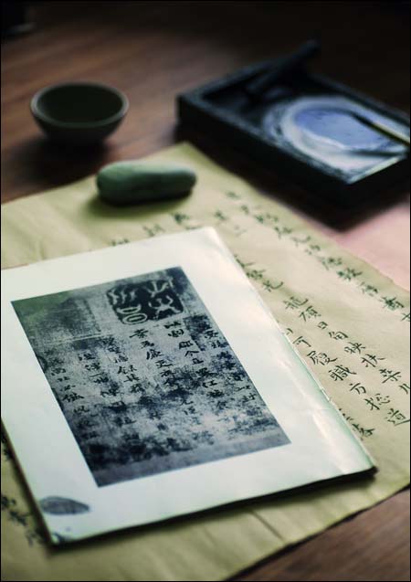 坐上輪椅的母親堅持著讀報, 讀書, 讀著讀著, 歪頭睡著了。二〇〇四年春天,母親決定抄寫《心經》。她叫我們扶她坐到可以望見窗外綠林的書桌前,用右手抬起左手,壓到宣紙上,然后右手執筆蘸墨書寫。手顫得厲害,懸在紙上良久才能落筆寫出一個筆畫,用盡心力才完成一個字,十幾分鐘便頹然擱筆。有些日子,母親起不了床,手指由被褥伸出來,在空中抖顫劃字。只要能夠起身,母親執意坐到桌前。我們兄弟工作完畢回家,總先檢視案上宣紙,發現經文未續,便知母親情況不好,讀到工整的字跡就歡欣鼓舞。然則,母親終于無法再坐到窗前。