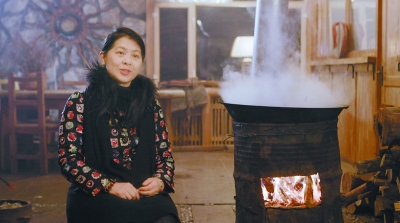 姥姥和姥爺都是山東過來的,我是逃荒人的后代。在這個火爐邊兒聽他們講從齊魯之地帶來的鬼神故事,聽得我特別著迷,覺得劈柴也像聽眾,它也在聽,而且聽得歡欣鼓舞。你聽,有的時候像在鼓掌,噼啪噼啪的這種聲音,太熟悉了,非常親切,但是同時也給人一種憂傷的感覺。現在我們走進北極村,能找到這樣的環境,這樣燒劈柴、有火爐的人家越來越少了。