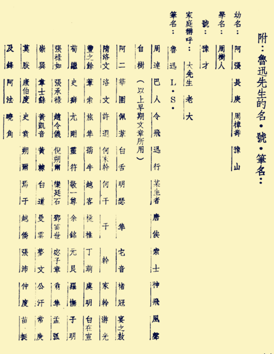 附一:魯迅筆名別冊