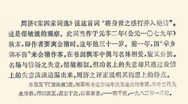 對比之下,顯而易見。正如程千帆附記所說,初版所考定的“作詞年代及地點均有誤”,因而其詞中所寄寓的情感,也就不同了。這對于我們理解這首詞,當然是很重要的。