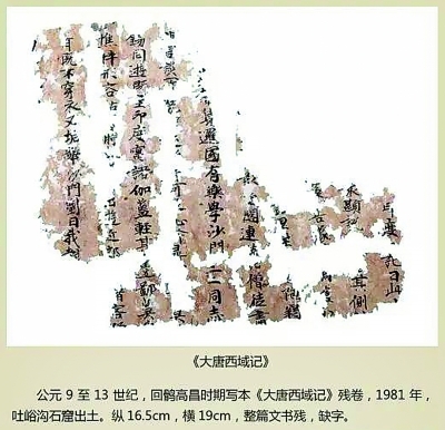 武漢大學(xué)教授陳國(guó)燦研究認(rèn)為,《大唐西域記》最早寫本在新疆吐魯番地區(qū)吐峪溝石窟寺發(fā)現(xiàn),與玄奘和高昌王室麴氏家族的關(guān)系有關(guān)。