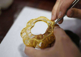 花絲鑲嵌是一門傳統的宮廷藝術,其工藝復雜而且繁瑣,花絲工藝基本技法用八個字來概括即為:掐、填、堆、壘、織、編、攢、焊。