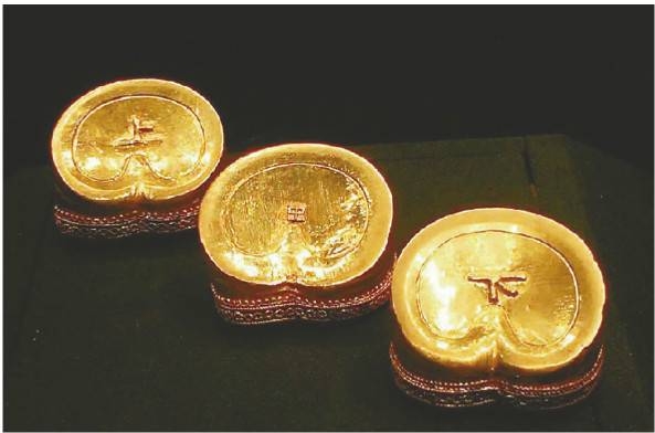 資料顯示,江西南昌西漢海昏侯墓出土金器478件,重量已超過78公斤。其中大小兩種馬蹄金33枚,麟趾金15枚,分別刻有“上”“中”“下”三種文字,對此專家還未得出完整結論。