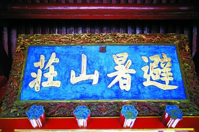避暑山莊正殿大門的上方懸有一塊匾,上面寫著“避暑山莊”四個鎦金大字,為康熙皇帝的御筆,仔細看去就會發現,“避”字右邊的“辛”下部多寫了一橫。據史料記載,康熙皇帝特意加了一筆,是他認為:“此是避暑之避,不是避難之避”。原來,皇上是忌諱“避”字有“逃避”的意思,不吉利,所以大筆一揮加上一橫,這樣就沒有“逃避”之意了。