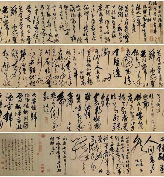 祝允明《自書詩卷》紙本草書,47.3×321.3cm正德十五年(公元1520年)上海博物館藏