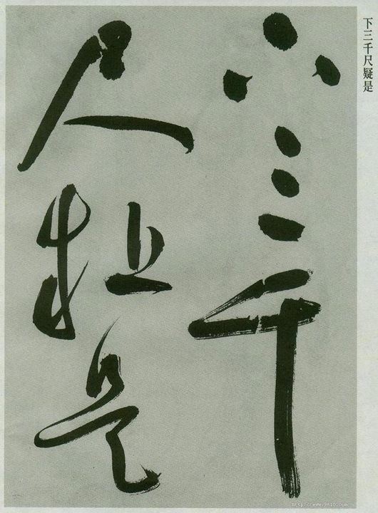 枯濕。枯,即干枯,是毛筆上的墨汁將近用完時的狀態(tài),這時就會出現(xiàn)飛白。在出現(xiàn)飛白時,書寫速度不可太快,比濃墨時的運筆要更加用力。濕,自然是剛蘸墨時的狀態(tài),這時寫的字很容易出現(xiàn)漲墨,漲墨后的字一定要可識,否則就是墨豬一個。凡事都有個度,濕要見形,枯要見字,枯濕過渡要自然。