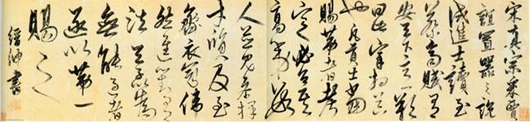 解縉的草書,師法懷素。此卷前三行略顯拘謹,自第四行起,漸趨流暢奔放。運筆矯健勁拔,鋒穎多變,頓挫圓轉,揮灑自若。其用墨濃而干,墨色黝黑如漆,墨韻飛動,更添風采。解縉的草書,在書法史上負有盛名,與明初三宋(宋克、宋廣、宋璲)并駕齊驅(qū)。