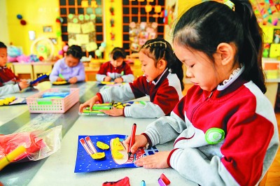 河北石家莊第一實驗幼兒園的孩子們在手繪冬至民俗畫。新華社發