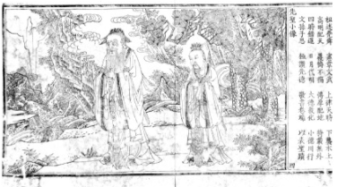 在中國古代,《圣跡圖》大致通過三種方式制作、傳播,即:石刻、繪畫、版畫,其中尤以版畫為大宗。蓋版印可以化一紙為千百,行眾及遠,自然成為通過《圣跡圖》來傳播孔子思想、事跡最有效、最便捷的手段。版印《圣跡圖》所起甚早,有人說在印刷術的初起階段唐代就有了,阿英先生在《中國連環畫史話》中說:“孔子傳記連環圖畫《圣跡圖》,據說宋朝已經有了,只是我還沒有見到。”不過,對這些語焉不詳,既無實物遺存佐證,也不見文獻記載的“據說”,姑妄聽之也無不可,實在認不得真。清黃虞稷《千頃堂書目》卷三載,元大德年間(1297—1307),孔子第五十三代孫孔津編刊了一部《孔圣圖譜》,共三卷,首卷為圖,這應該是有明確記載的最早的刻本《圣跡圖》,但書已不傳,難明究竟。
