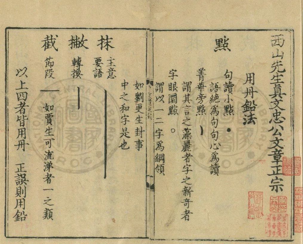 《用丹鉛法》,真德秀《西山先生真文忠公文章正宗》,南宋末年刻配補(bǔ)元刻本