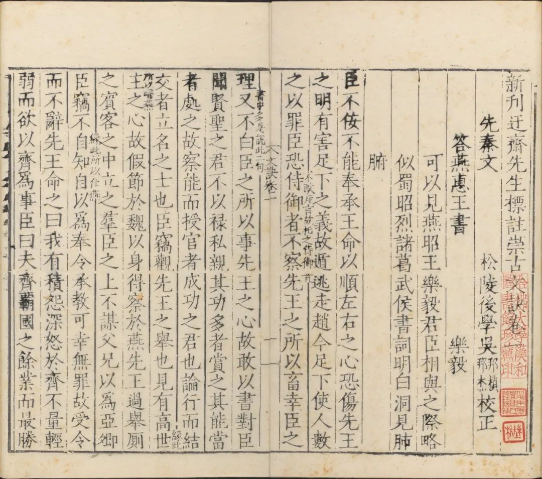 樓昉《新刊迂齋先生標(biāo)注崇古文訣》書影,明嘉靖間刻本