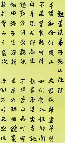 當(dāng)下禪文化被不斷賦予新的時代內(nèi)涵,不僅豐富了人們的精神世界,更建立起傳統(tǒng)文化意蘊與當(dāng)代慎思的橋梁。而毛筆書法、毛筆書寫曾是中國人日常的書寫方式,如今則成為一種培養(yǎng)品行修為的藝術(shù),兩相結(jié)合,使禪文化的書寫化作一項雋永的心性修為之旅。幾年前,在與一位從事現(xiàn)代繪畫藝術(shù)創(chuàng)作的“70后”藝術(shù)家交談時,得知他會在早上用毛筆抄寫經(jīng)文作為每日的功課,也許這便是禪在我們這個時代最真實的剪影,它或許并未如人們想象中的那么拘于形式,也并沒有異常神秘和遙不可及,而是在人們的日常中都可以真實感知和觸摸到的。