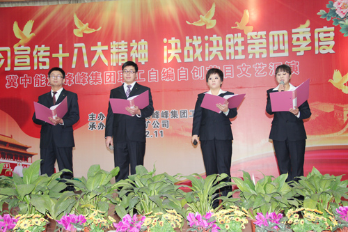 11月中旬,由冀中能源峰峰集團公司工會主辦和孫莊采礦公司工會協辦的學習宣傳十八大精神,決戰決勝第四季度職工自編自演節目文藝匯演在孫莊采礦公司拉開帷幕。來自峰峰集團公司15個基層單位的23個節目參加了展演。