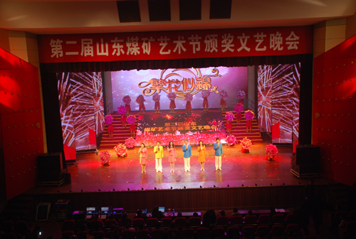 花開不為贊美的語言/怒放,只是為了奉獻/哪怕只有剎那的驚艷/也要編織整個春天/這千朵萬朵花兒啊/每一朵都詮釋了生命的無憾演員們具有穿透力的聲音,響徹兗礦集團職工俱樂部。2012年11月28日晚上7點30分,由山東省煤炭工業局、山東省煤礦工會、山東煤礦文體協會主辦,兗礦集團承辦的第二屆山東省煤礦藝術節頒獎晚會《繁花似錦》正在這里隆重上演。