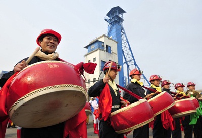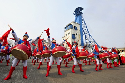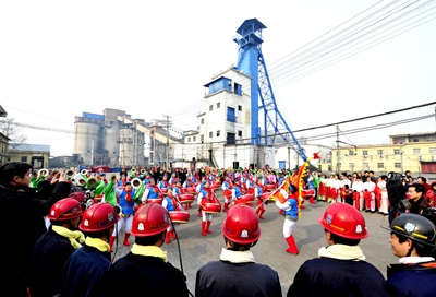 正月初一,百善礦鑼鼓喧天,歡慶新春