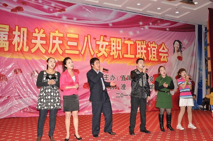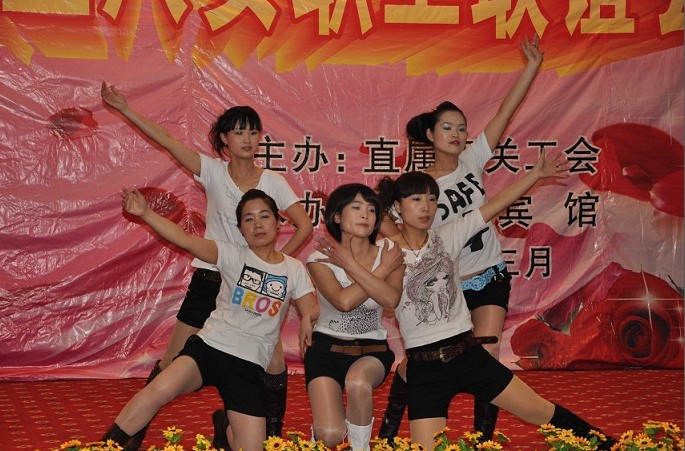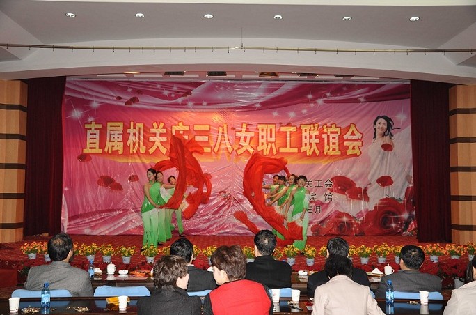 聯誼會在歡樂祥和的氣氛中開始,一曲歡快的舞蹈《歡聚一堂》拉開了演出的帷幕。女工們扭動婀娜的身姿,舞動美麗的手帕,舞出了對美好生活的憧憬。詩朗誦《獻給母親的歌》、《我們是平凡的信息女工》,字字抒真情,句句展風采,深深的感動了現場每一位觀眾。現代舞《浪漫櫻花》,明快的節奏、動感的旋律,展現了賓館員工積極向上的精神風貌,同時也為現場觀眾帶來視覺上的完美沖擊。女聲獨唱《新貴妃醉酒》,婉轉地旋律,柔媚的唱腔,博得了臺下觀眾熱烈的掌聲。黃梅戲《對花》、手語操《手牽手》、小品《賓館奇遇》、三句半《夸夸賓館好員工》、時裝秀等,一個個機關女工精心編排的節目,充分表達了大家歡慶節日的喜悅心情。