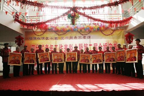 10月15日,同煤集團四臺礦老年文化活動中心彩旗招展,喜氣洋洋,四臺礦舉辦的第二屆相約金秋牽手幸福金婚慶典儀式正在隆重舉行。10對慈祥的老人披紅戴花,盛裝登場,喜慶金婚。參加金婚慶典活動的有離退休干部、老同志、勞動模范和員工代表等150多人,其中年齡最大的81歲,婚齡最長的一對已相伴58年。