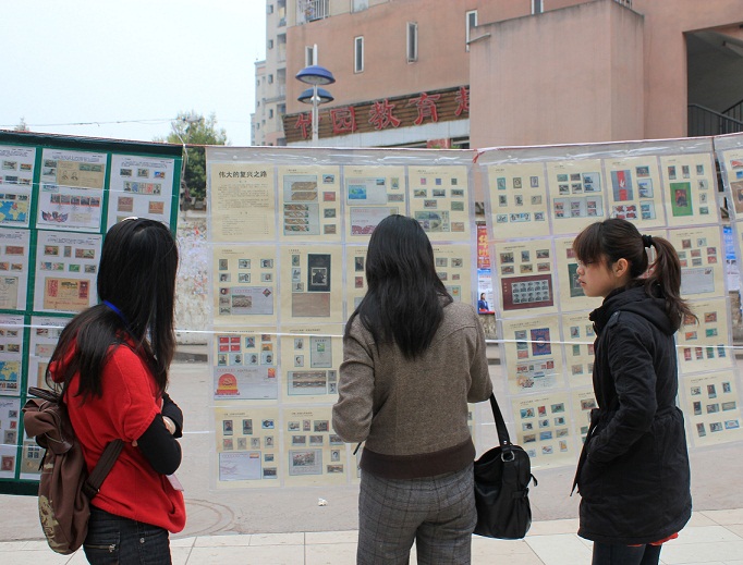 此次郵展共展出了近百框幾千枚郵票,內容涵蓋了中國革命歷史、共和國六十年成果、中國海軍、三峽工程、少數民族風情、重慶直轄十周年、新中國的體育運動,以及孫中山、毛澤東、周恩來、鄧小平等革命先驅和科學家候光炯等。千牛建設公司工會還特別展出了一部主題為偉大的復興之路的郵集。據了解,此部郵集曾參加過多次郵展,在北碚區集郵協會郵展上還獲得了一等獎。此部郵集用243張封片戳票講述了鴉片戰爭,辛亥革命、中共的成立、第一次和第二次國內革命戰爭、抗日戰爭、解放戰爭、新中國的成立、社會主義建設和改革開發,以及和諧發展騰飛的中國。