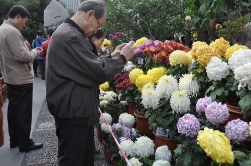 為慶祝十八屆三中全會勝利閉幕,展示礦區精神文明建設成果,近日,山東豐源集團股份有限公司張集煤礦舉辦了首屆菊花展。據了解,此次菊花展以倡導綠色環保為主題,特意突出了綠色、環保、經濟的理念。圖為職工及家屬參觀菊花展并競相拍照。