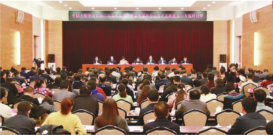 10月22日,中國(guó)文聯(lián)學(xué)習(xí)貫徹《中共中央關(guān)于繁榮發(fā)展社會(huì)主義文藝的意見》專題研討班在京舉辦。圖為研討班現(xiàn)場(chǎng)。 單 鳴 攝