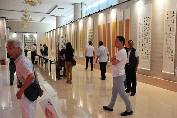 4月10日上午, “心象·葉文書法作品巡回展”北京站開幕式在京東晉商博物館成功舉辦。中國書法家協(xié)會顧問、博士生導(dǎo)師胡抗美,中國國家畫院書法篆刻院秘書長曾翔,中國煤礦書法家協(xié)會副主席兼秘書長盛軍,中國職工書法家協(xié)會副秘書長舒杰,中國金融書協(xié)副主席馬奔及各地書法家和書法愛好者近百人參加了開幕式。